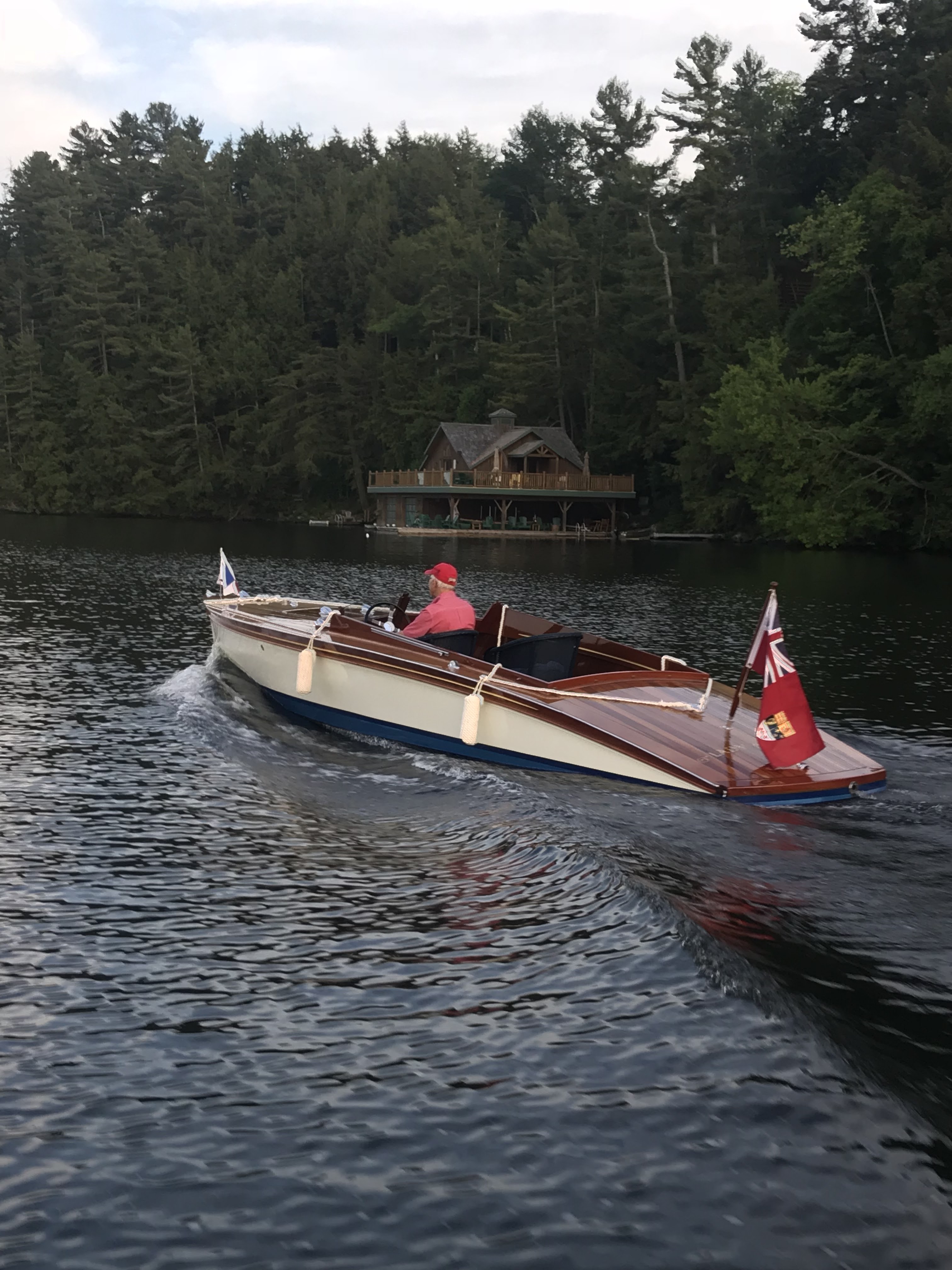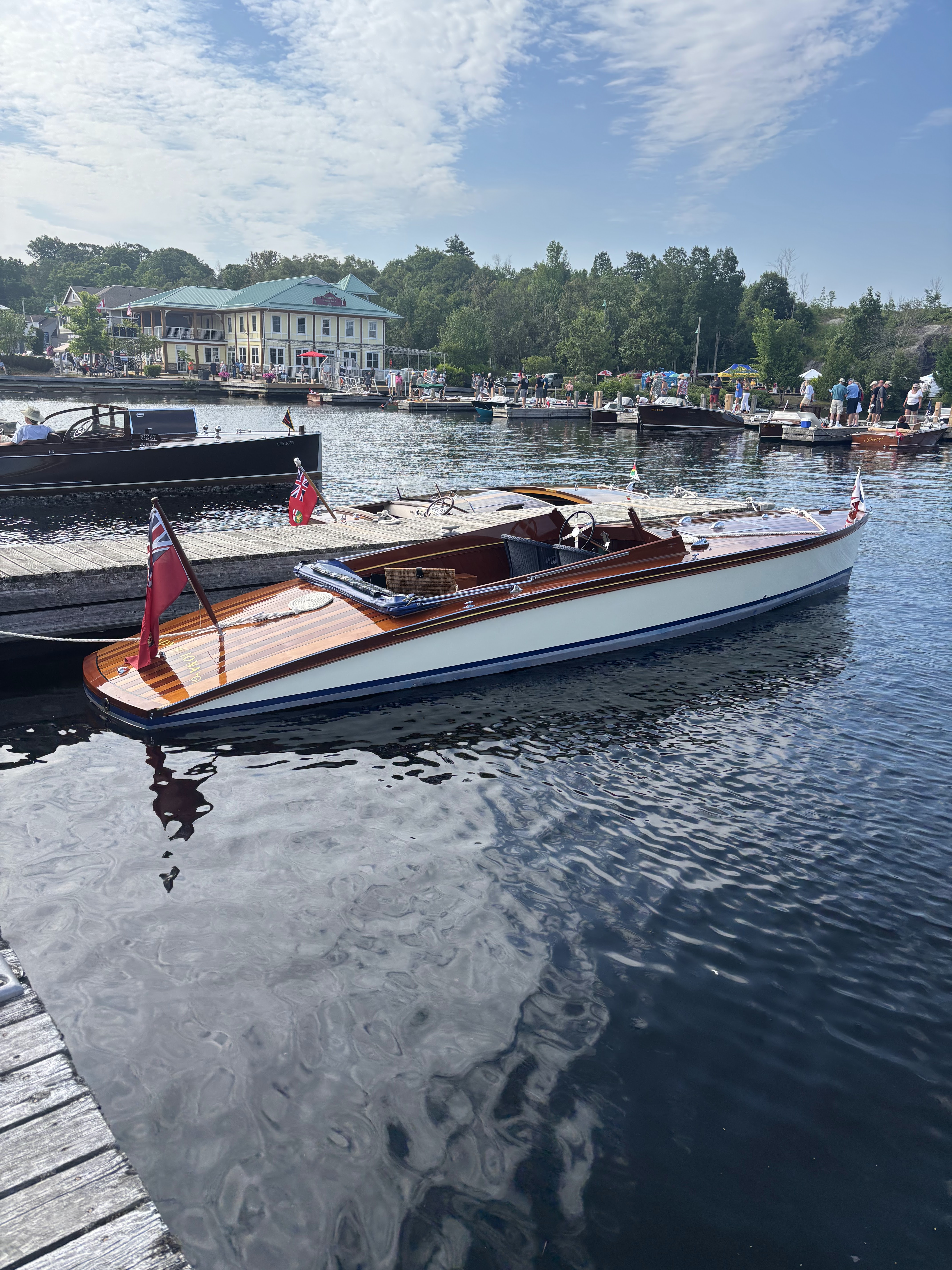 1961 Andrews 25-Foot Slipper Launch | Boat No. 451 | With Custom Trailer Offered for sale is Lady of Iona, a rare and beautifully preserved 25-foot Andrews Slipper Launch, built in 1961 by J. Andrews & Son of Bourne End, Buckinghamshire. She is boat number 451 and the last of seven consecutive 25-foot launches built that year, making her a particularly desirable example of this iconic British marque. Lady of Iona underwent a full professional rebuild in 2003 by Trevor Green & Co. (Henley-on-Thames), including a new Iroko bottom, chine repairs, new hull sides, hatch frames, and striking alternating African and Brazilian mahogany decking. A further refurbishment was completed in 2017 in Muskoka, Ontario, by James Osler Classic Boat Restoration, with her original Austin Vedette 4-cylinder marine engine comprehensively rebuilt by Matt Fairbrass (Whiteside Mechanical), also based in Muskoka. The cockpit features four Lloyd Loom wicker chairs, recessed lighting, renewed wiring, exceptional high-gloss varnish work, and traditional gold-leaf name and cove lines. She presents to a very high standard throughout. Since being imported to Canada in 2003, Lady of Iona has been stored in a boathouse in Muskoka, north of Toronto, and has always been kept out of the water on a lift, ensuring excellent long-term preservation. She has been a regular exhibitor at the Antique & Classic Boat Society (ACBS) Toronto Chapter’s Muskoka Show, earning multiple awards for presentation and authenticity, including 1st Place Platinum – Classic Inboard (2025), and was recently featured in an ACBS publication highlighting outstanding classic craft. The boat is offered with a custom-built trailer and can be loaded onto the trailer in the spring. A comprehensive binder documenting her history, provenance, and restorations is included and can be shared digitally with serious buyers. Additional photos, engine details, dimensions, and technical information are available. A rare opportunity to acquire an award-winning Andrews Slipper Launch with exceptional provenance and meticulous care.